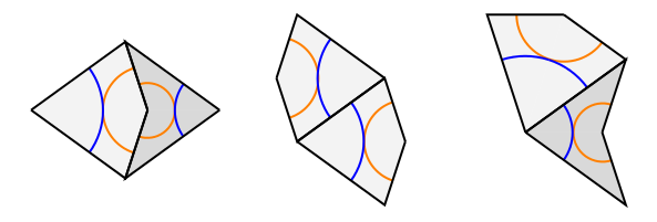 The bumps or markings rule out many possible arrangements of tiles. For example, these three configurations are illegal because the markings fail to line up: