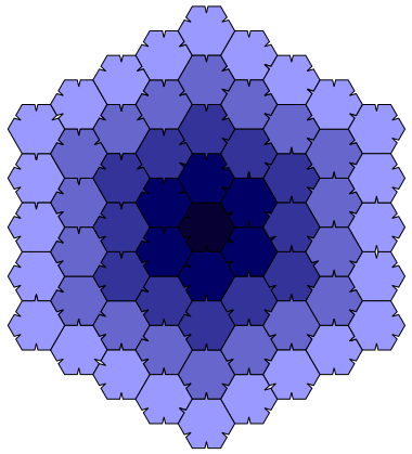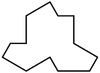 In the Extension Theorem, the tile (or tiles) are required to cover 'larger and larger' patches of the plane. This is intended to mean that the tile can cover as large a patch as desired, or that there is no limit to the size of a patch covered by the tile. One might ask if there is some patch size that is always large enough. As an example for thought, the tile shown below is a hexagon with one flat side, two spiked sides, and three dents. The spikes fit into the dents, and for a while this tile can build a tessellation, but eventually the dents outnumber the spikes and one gets stuck - Amman's dented hexagon cannot tile the plane, even though it can tile a fairly large patch: