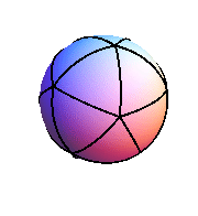 The other degenerate tessellation is a “beach ball” made with k biangles which have 360°/k corner angles. The beach ball with k = 7 is shown, and there is one for any choice of k > 1.