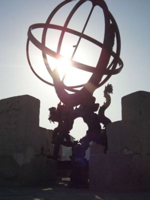 Spherical geometry is nearly as old as Euclidean geometry. In fact, the word geometry means “measurement of the Earth”, and the Earth is (more or less) a sphere. The ancient Greek geometers knew the Earth was spherical, and in c235BC Eratosthenes of Cyrene calculated the Earth’s circumference to within about 15%. Navigation motivated the study of spherical geometry, because even 2000 years ago the fact that the earth was curved had a noticeable effect on mapmaking. Even more importantly, the sky can be (and often was) thought of as a spherical shell enclosing the earth, with sun, moon, and stars dancing about on its surface. Navigation and timekeeping required a thorough understanding of how the heavenly bodies moved, and that required spherical geometry.